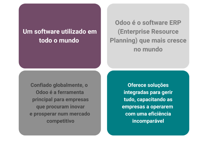 - Compromisso com a evolução: o Odoo acompanha as mudanças do mercado e da tecnologia